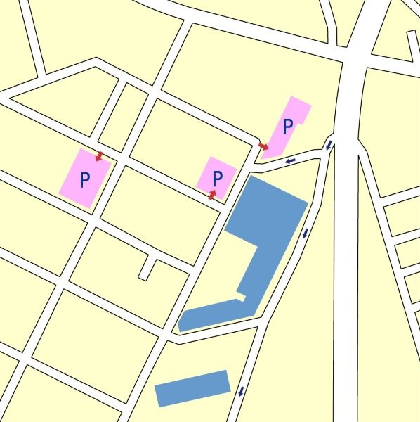 やむを得ず車でご来院の際は、病院の周囲に外部企業(K&Kエンジニアリング(株))が管理する駐車場がございますので、そちらをご利用ください。(下図↓参照)