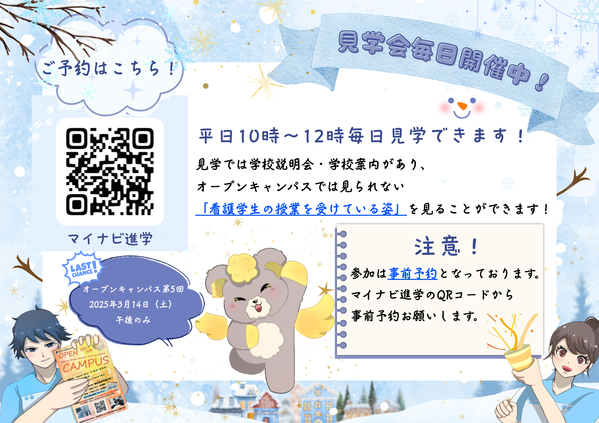 プログラム;学校紹介/入試説明/授業見学/個別相談 等