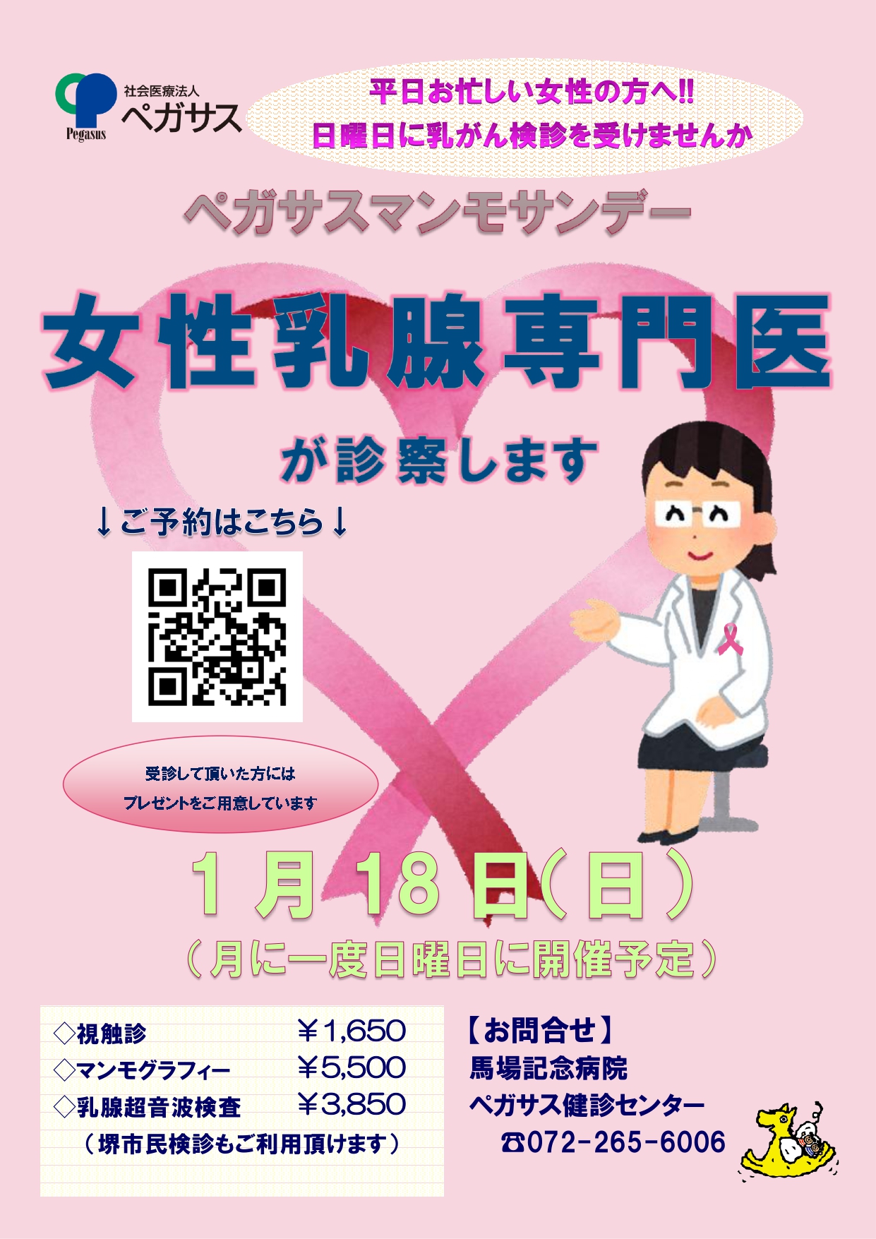 1月乳がん検査(マンモサンデー) 受付中(健診センター)